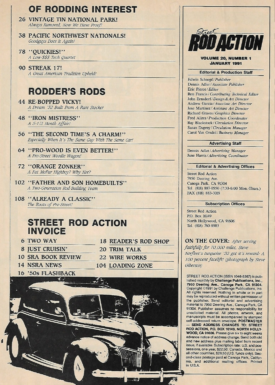 Reviews STREET ROD ACTION 1991 JAN - FLUSH-FIT GLASS, REVERSED WHEELS, GASKETS