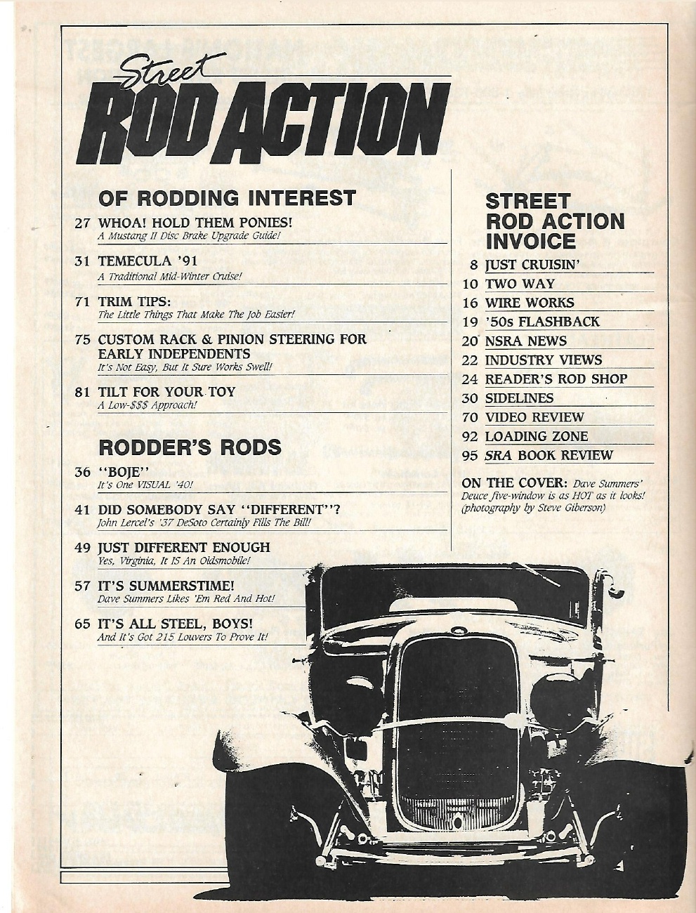 Reviews STREET ROD ACTION 1991 JULY - RACK & PINION, MUSTANG II BRAKES, UPHOLSTERY TIPS