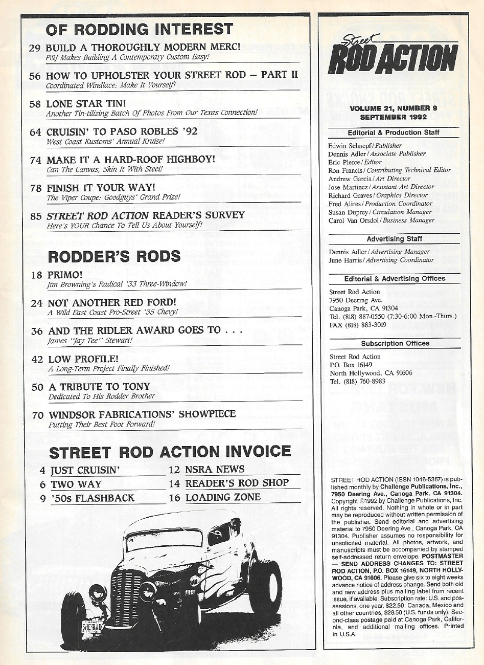 Reviews STREET ROD ACTION 1992 SEPT - STEEL ROOF INSERT, UPHOLSTERY BASICS II