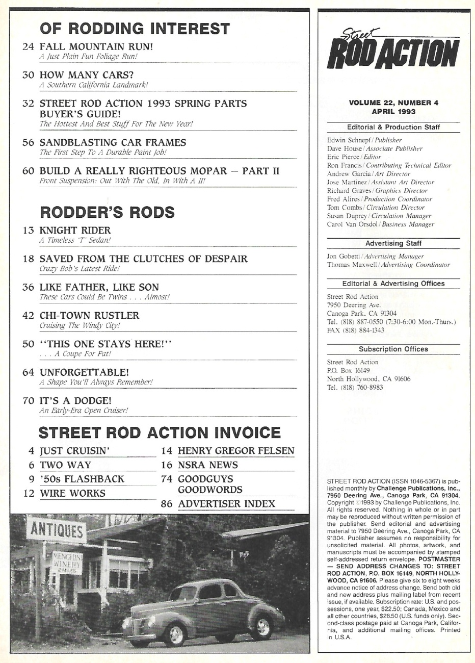 Reviews STREET ROD ACTION 1993 APR - FALL MOUNTAIN RUN, BUILD A RIGHTEOUS MOPAR II