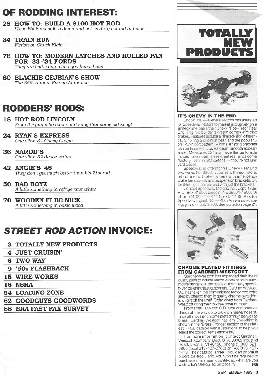 Reviews STREET ROD ACTION 1993 SEPT - FRESNO AUTORAMA, HOT ROD LINCOLN, LATCHES & PANS