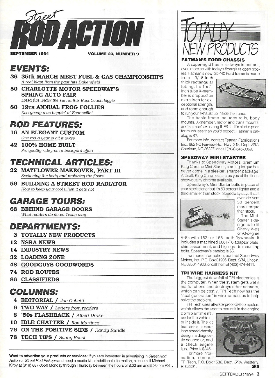 Reviews STREET ROD ACTION 1994 SEPT - HOME-BUILT '29, FROG FOLLIES, ROD RADIATOR