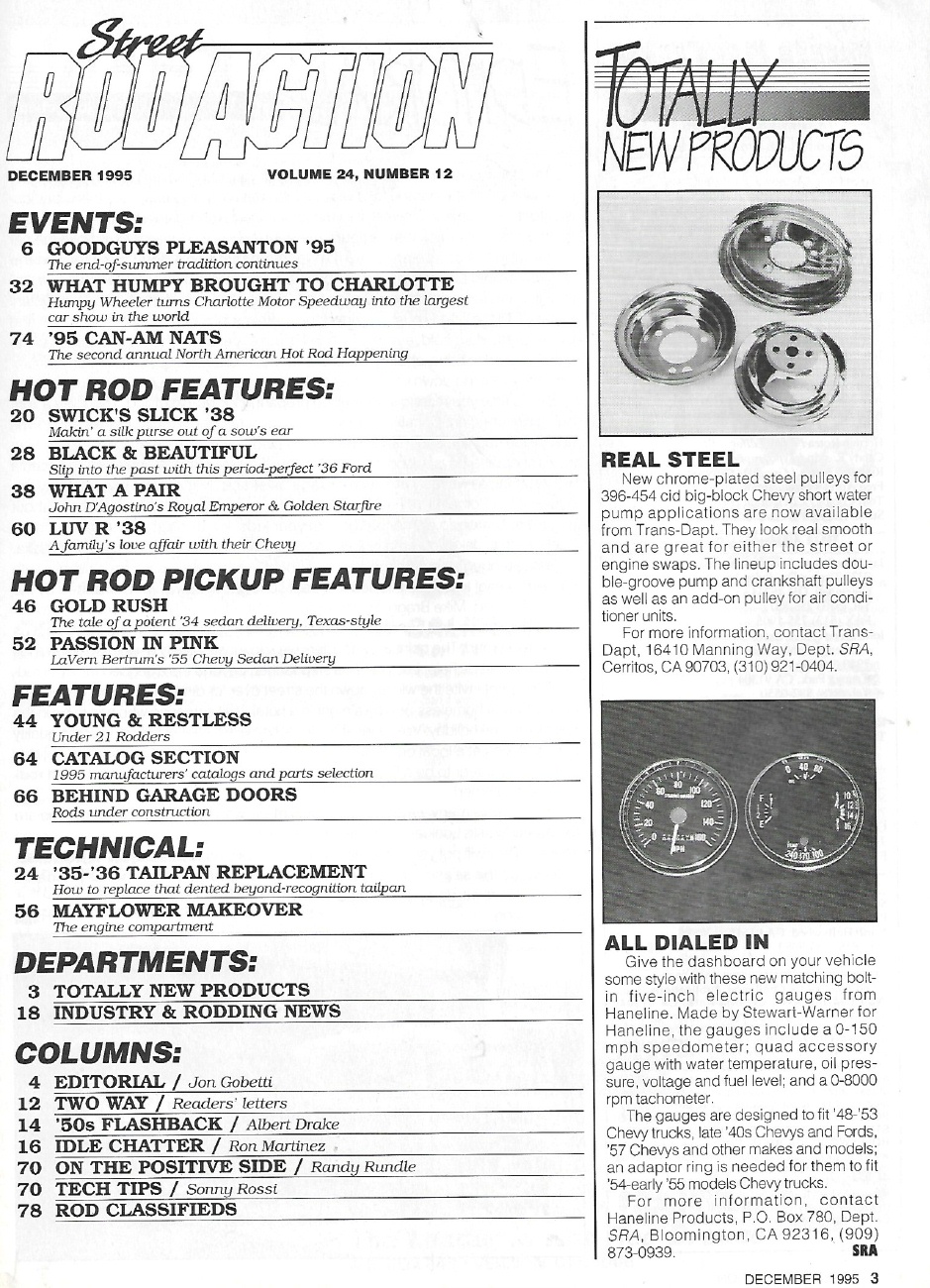 Reviews STREET ROD ACTION 1995 DEC - SWICK'S SLICK '38, '36 COUPE, HUMPY WHEELER