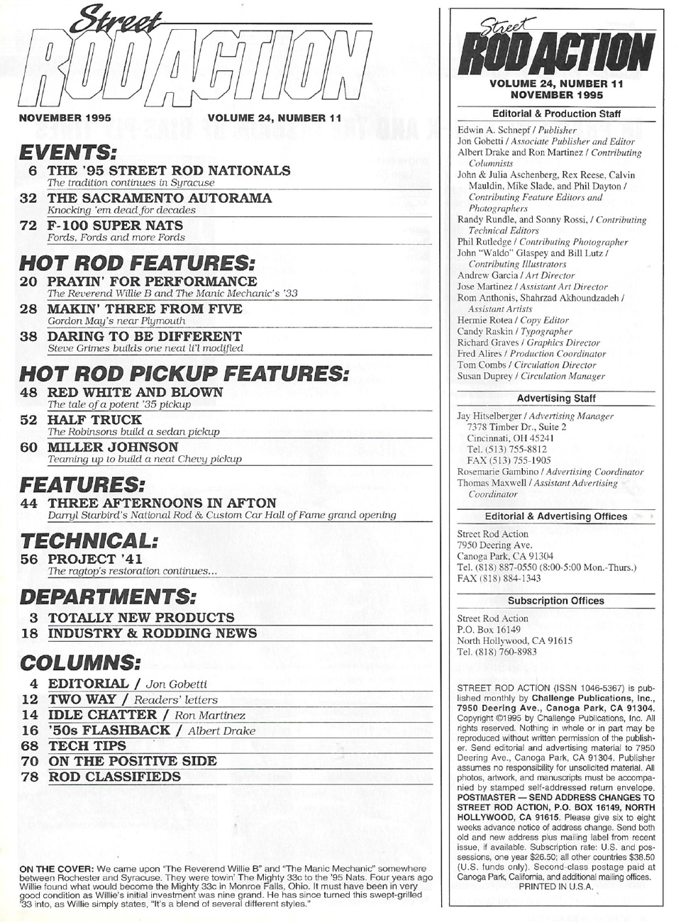 Reviews STREET ROD ACTION 1995 NOV - WILLIE B'S '33, '27 T, F-100 SUPER NATS, PROJ '41