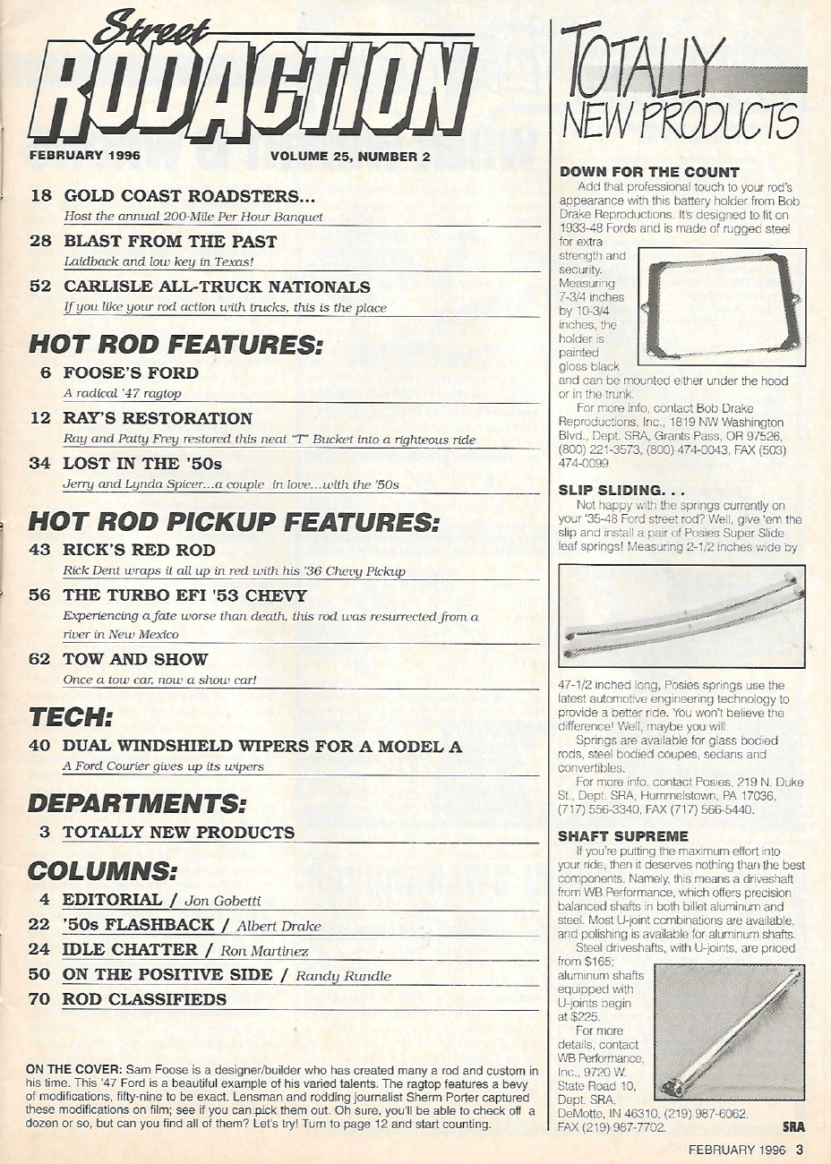 Reviews STREET ROD ACTION 1996 FEB - '53 FORD & '54 CHEVY CUSTOMS, FOOSE'S FORD '47