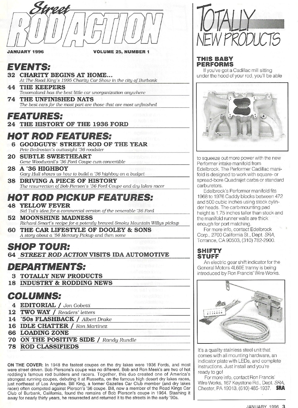 Reviews STREET ROD ACTION 1996 JAN - '36 FORD, DOOLEY & SONS '56 MERCURY PICKUP