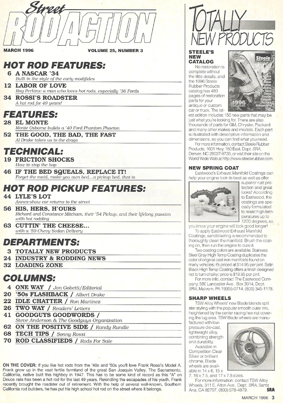 Reviews STREET ROD ACTION 1996 MAR - ROSSI'S ROADSTER, DIY PICKUP BED, '40 FORD PHANTOM