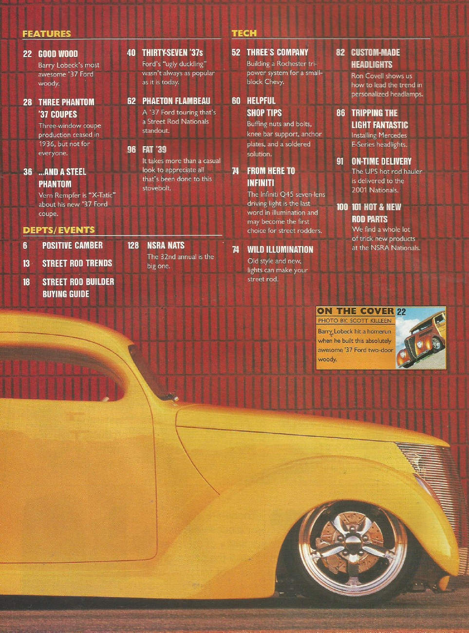 Reviews STREET ROD BUILDER 2001 OCT - '37 SPECIAL,TRI POWER BUILD UP,HEADLAMP SPCL