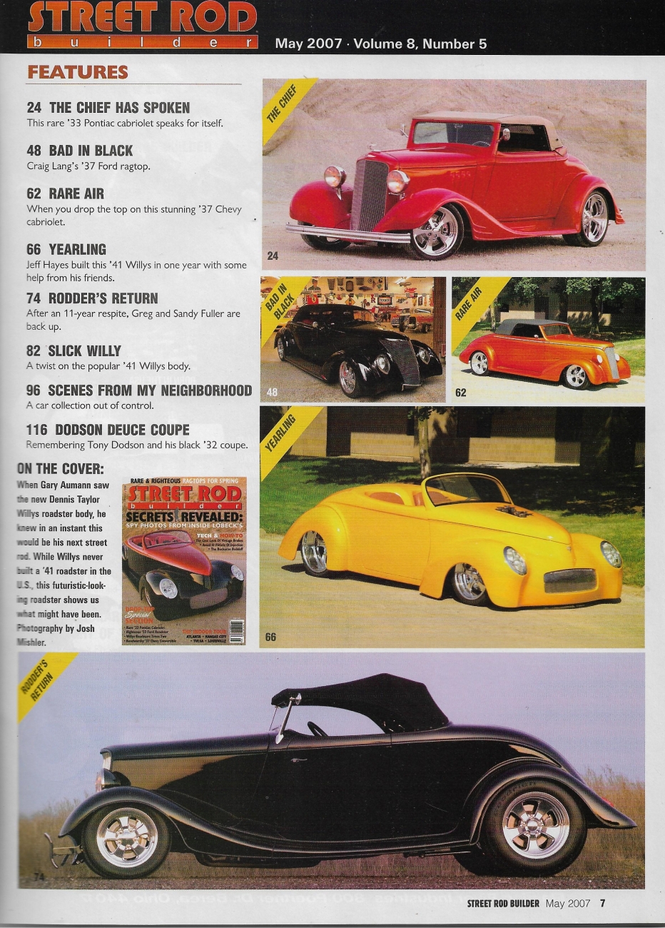 Reviews STREET ROD BUILDER 2007 MAY - WILLYS ROADSTERS, 33 PONCHO CABRIOLET,RAGTOPS