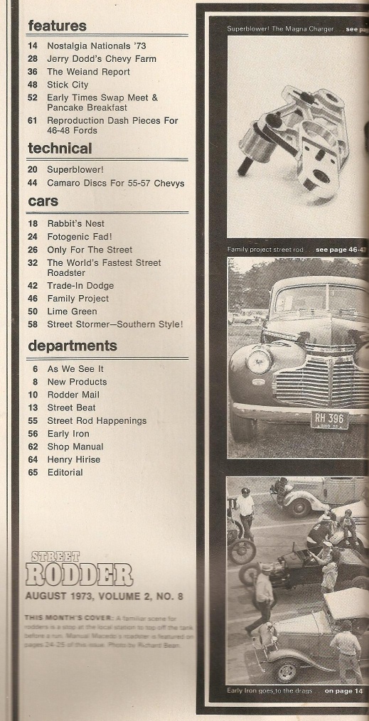 Reviews STREET RODDER 1973 AUG - STREET BLOWER, DISCS FOR TRI-5 CHEVY, LOONEY DASH