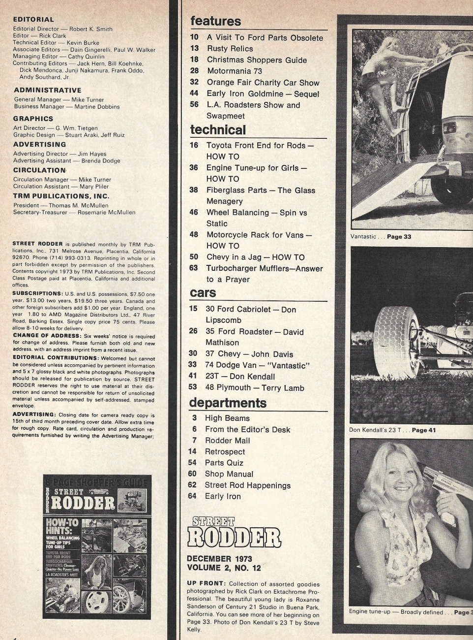 Reviews STREET RODDER 1973 DEC - WHEEL BALANCING, TOYOTA FRONTS,TURBOCHARGER MUFFLERS*