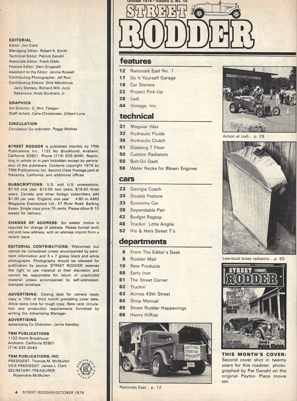 Reviews STREET RODDER 1974 OCT - CASTING REPRO PARTS, JUICE CLUTCH