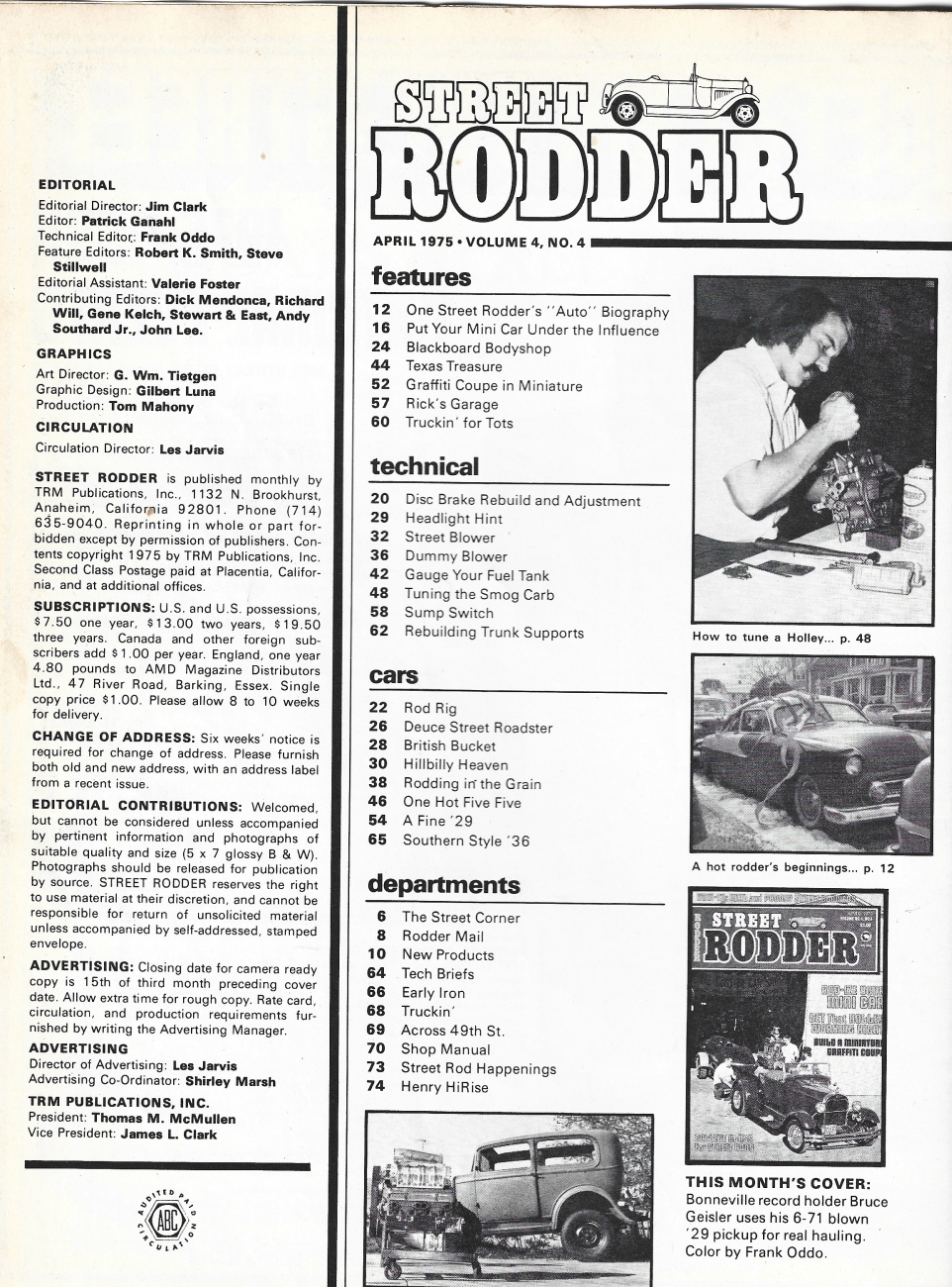 Reviews STREET RODDER 1975 APR - HOLLEY, MINIATURE GRAFFITI COUPE, STREET BLOWERS