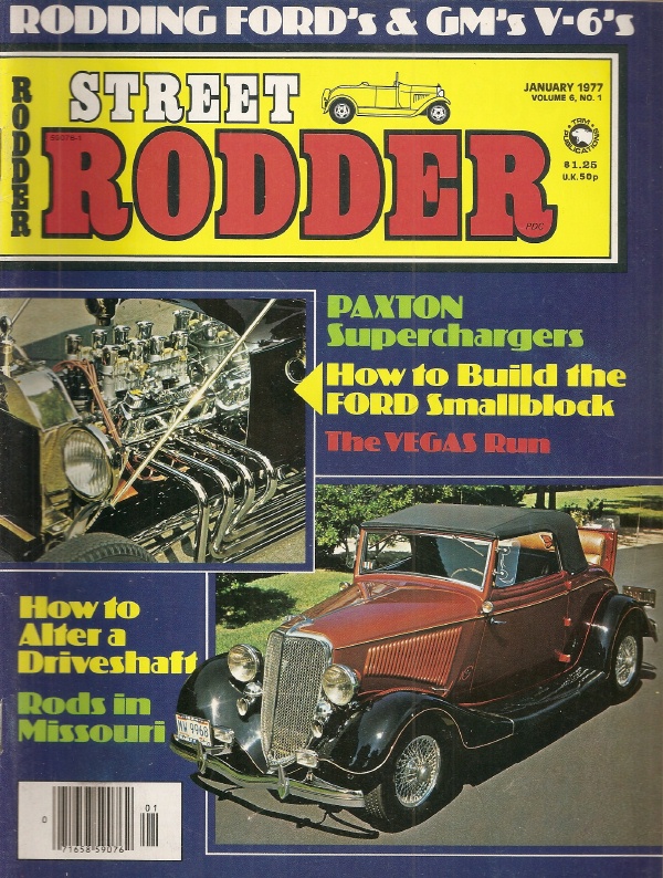 Reviews STREET RODDER 1977 JAN - V-6s DUEL, PAXTON SUPERCHARGING, SMALL BLOCK FORD
