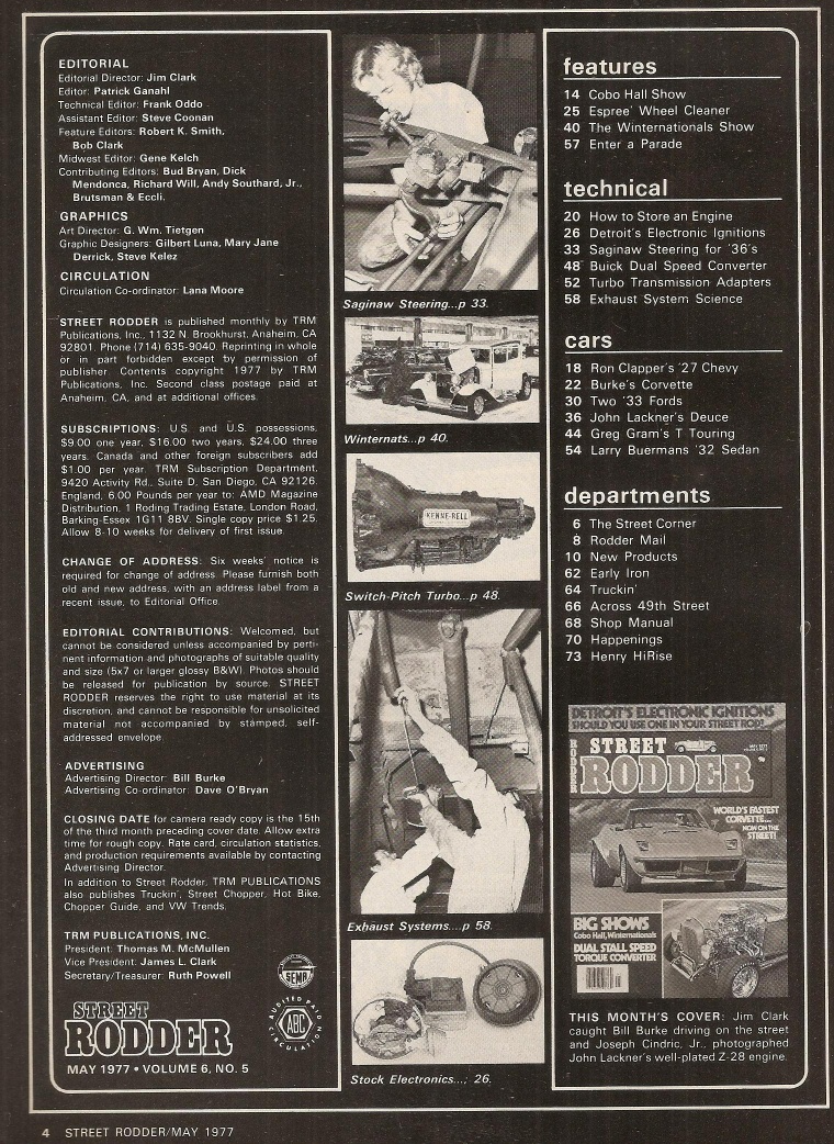 Reviews STREET RODDER 1977 MAY - BUICK DUAL SPEED CONVERTER, BILL BURKE’s VETTE