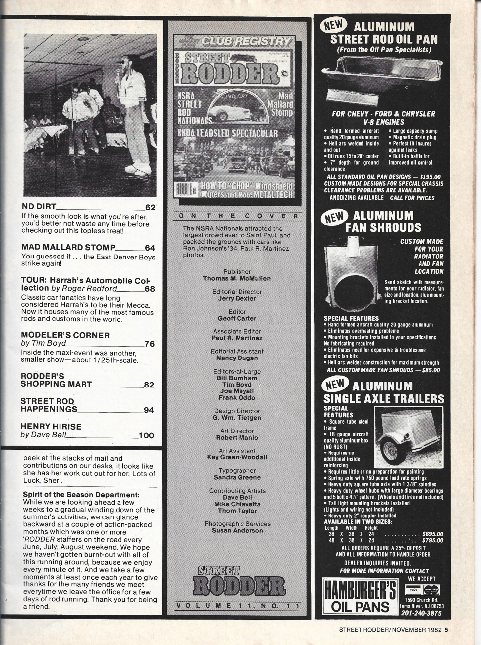 Reviews STREET RODDER 1982 NOV - MAD MALLARD STOMP,KKOA, CHOP WINDOWS, WIPERS, N D DIRT