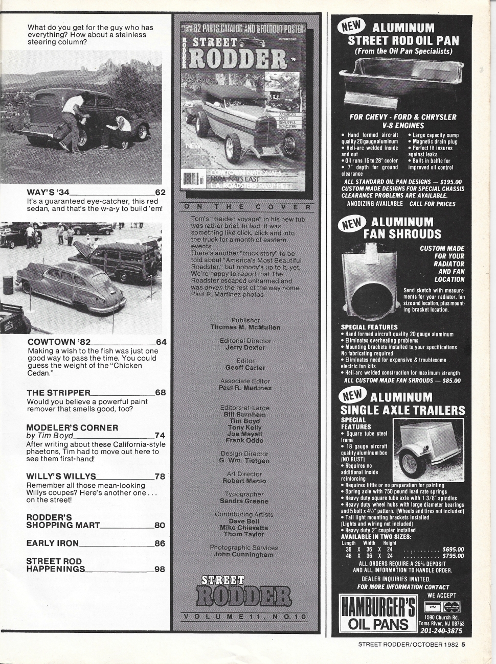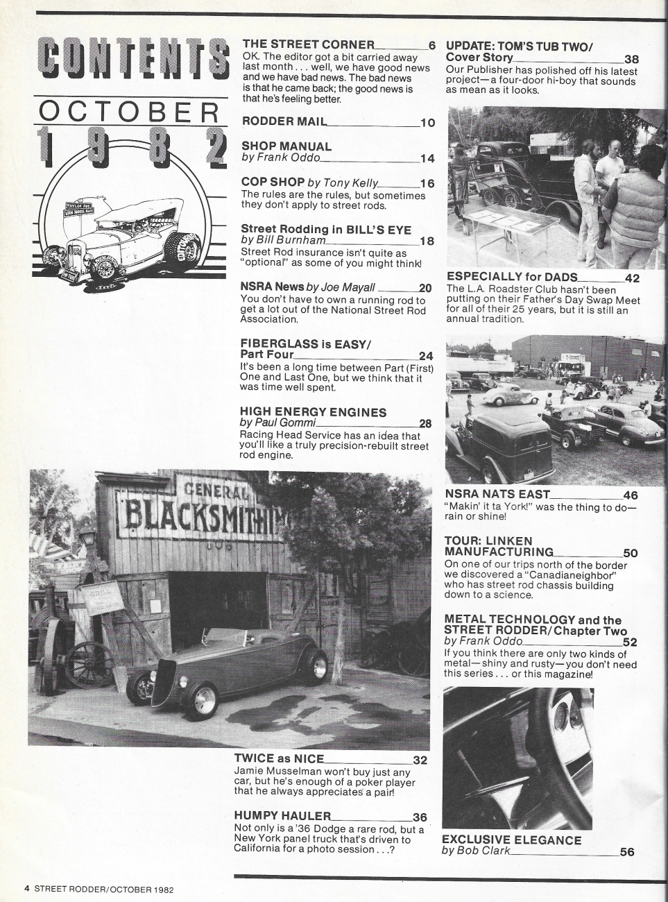 Reviews STREET RODDER 1982 OCT - TOM'S TUB, FIBERGLASS PT 4, HIGH ENERGY ENGINES