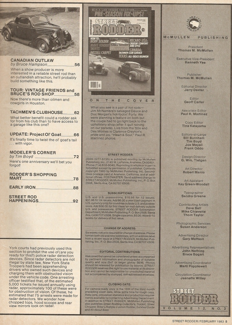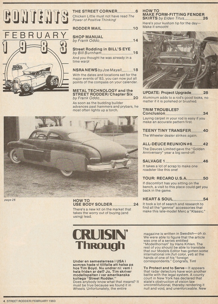 Reviews STREET RODDER 1983 FEB - FENDER SKIRTS MADE, CARPET INSTALLED, BODY SOLDER