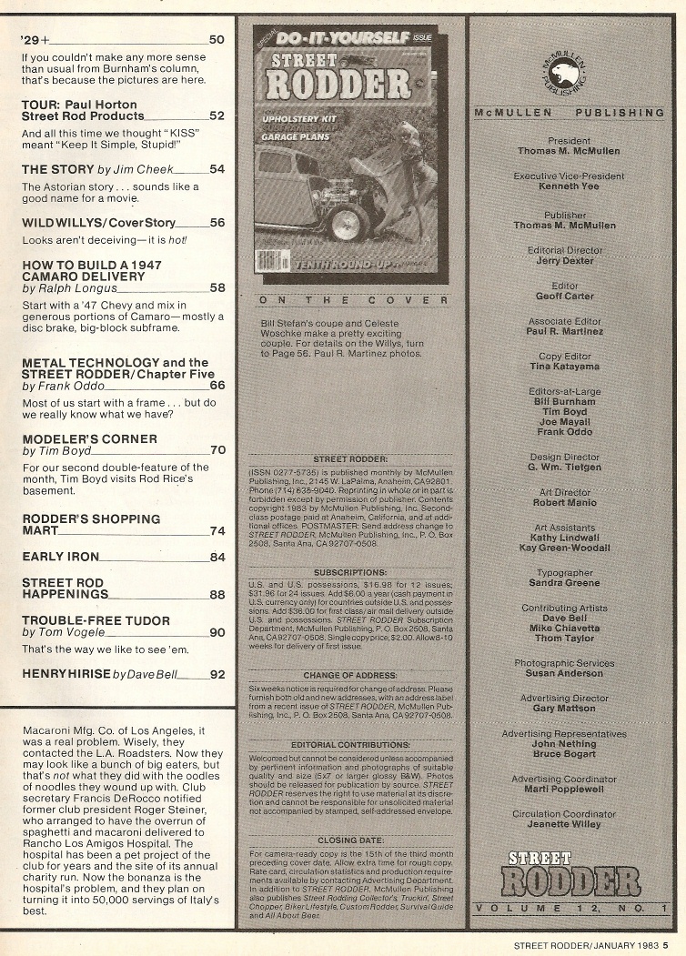 Reviews STREET RODDER 1983 JAN - BUDGET UPHOLSTERY, FRAME DESIGN & MATERIALS