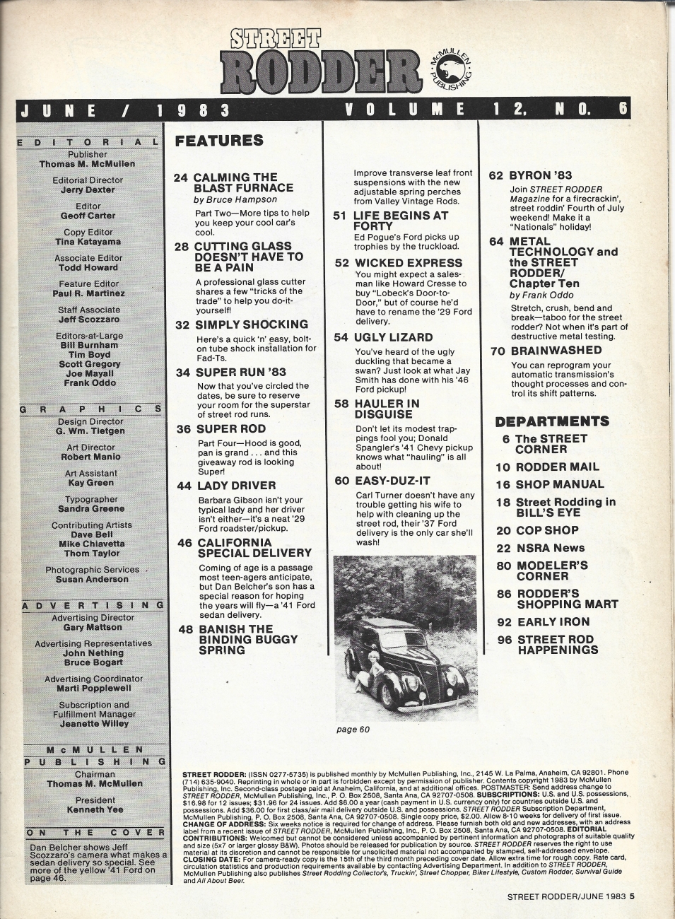 Reviews STREET RODDER 1983 JUNE - AUTO TRANS UPGR, CUT LAMINATED GLASS, BOLT ON SHOCKS