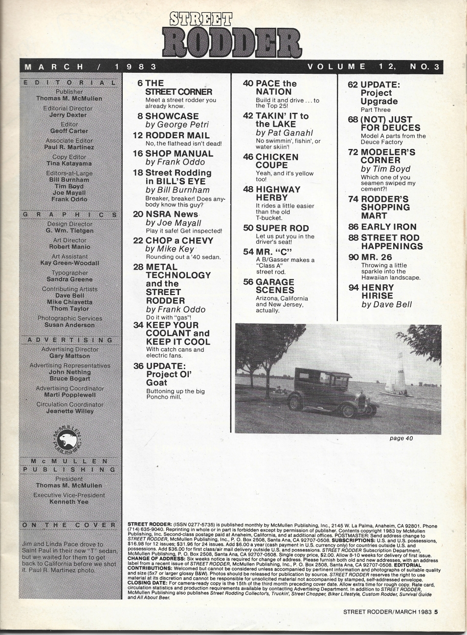 Reviews STREET RODDER 1983 MAR - CHOP A '40 CHEVY, MODEL A SUSP PARTS, '27 TALL,