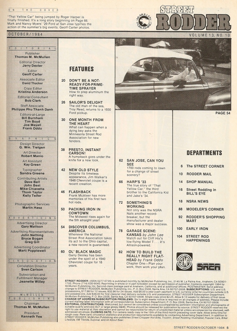 Reviews STREET RODDER 1984 OCT - FLATHEAD REBUILD, HUMPBACK GETS A CARSON-TYPE TOP