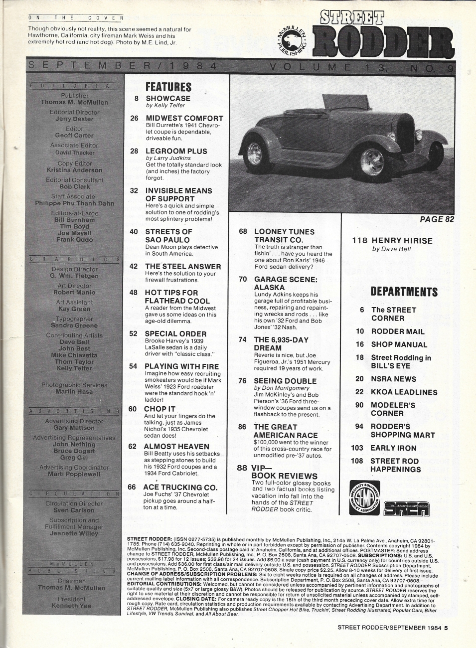 Reviews STREET RODDER 1984 SEPT - COOL YOUR FLATHEAD, CHOPPED TO WOOD, '32 FORD PHAETON