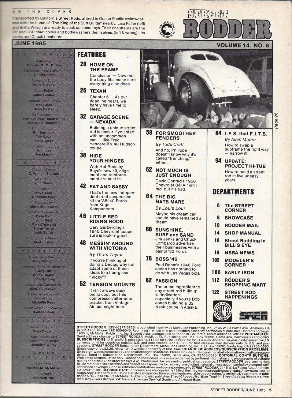 Reviews STREET RODDER 1985 JUNE - KIT OR SWAP, THO TAYLOR DEUCE, SHIM SHAPE YOUR BODY