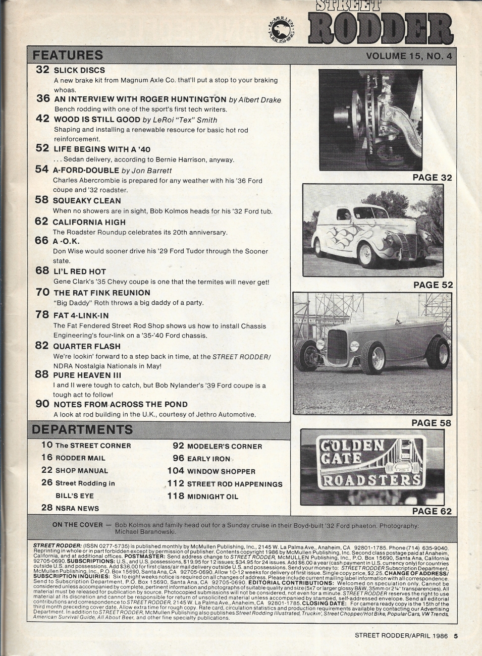 Reviews STREET RODDER 1986 APR - RAT FINK REUNION, ROGER HUNTINGTON, FAT FENDERS