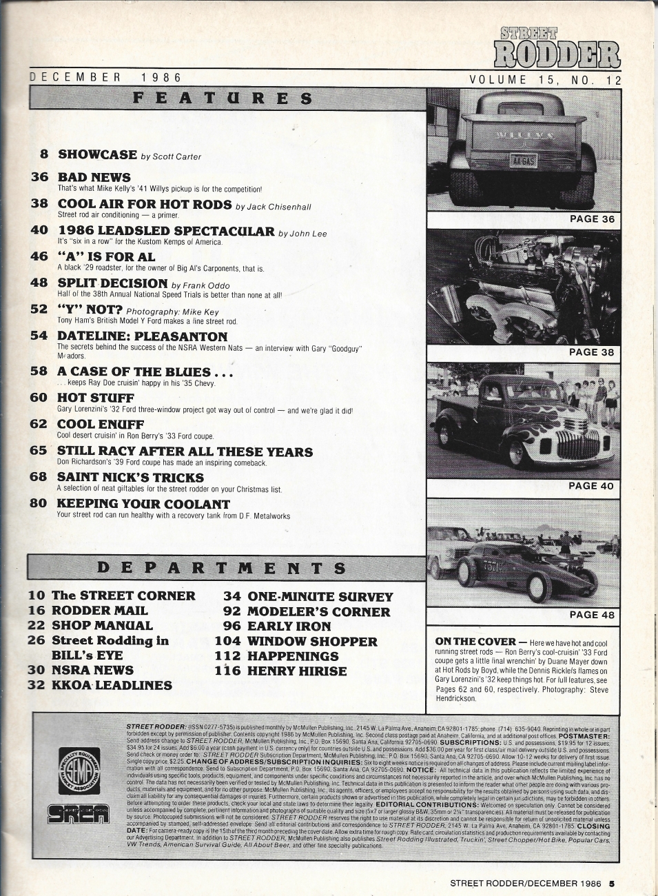 Reviews STREET RODDER 1986 DEC - AIR COND FACTS, COOLANT RECOVERY, NSRA WESTERN NATS
