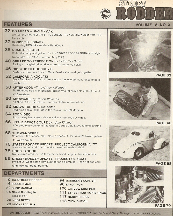Reviews STREET RODDER 1986 MAR - RESTORING A MANGLED '35 FORD GRILLE, MIG TEST