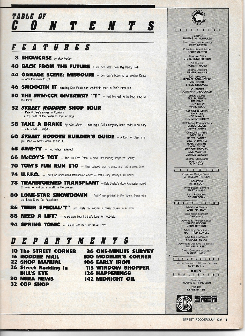 Reviews STREET RODDER 1987 JULY - BOLT ON FAT FENDER REAR SUSPENSION, BIG DADDY ROTH*