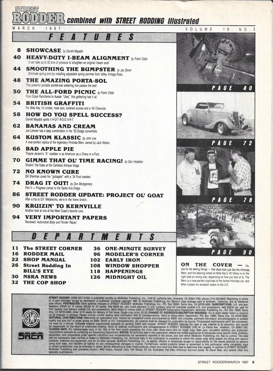 Reviews STREET RODDER 1987 MAR - I-BEAM FRONT END ALIGN, BEAT BINDING ADJUST SPRINGS