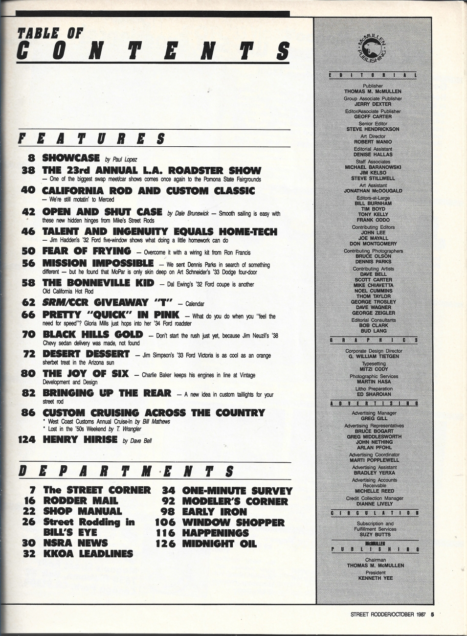 Reviews STREET RODDER 1987 OCT - WIRING KIT, TRICK TAILIGHTS, PLASTIC DEUCE