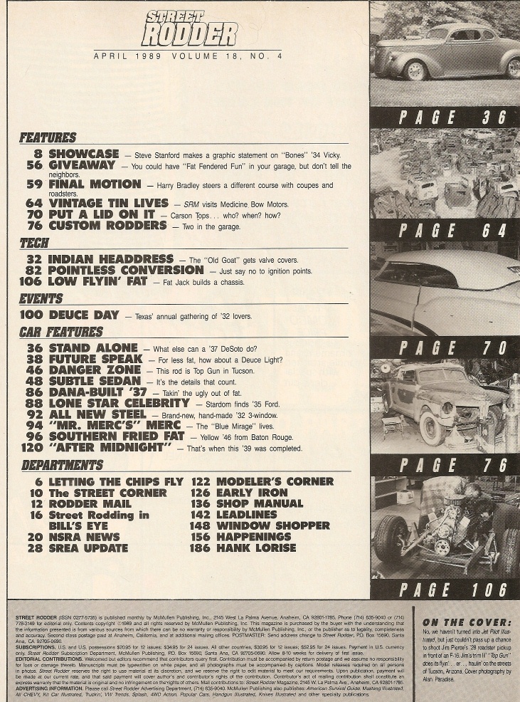 Reviews STREET RODDER 1989 APR - FAT JACK BUILDS A 1941-48 FORD FRAME, POINTLESS