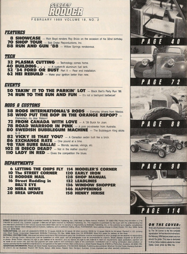 Reviews STREET RODDER 1989 FEB - STREET ROD TRACK SHOOTOUT, HEI REBUILD, CUSTOM TANK