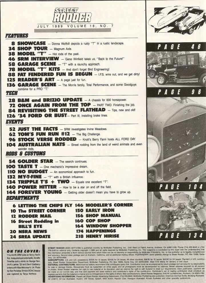 Reviews STREET RODDER 1989 JULY - NEW & OLD FLATHEAD TIPS, ALL FORD DAY AT THE FARM