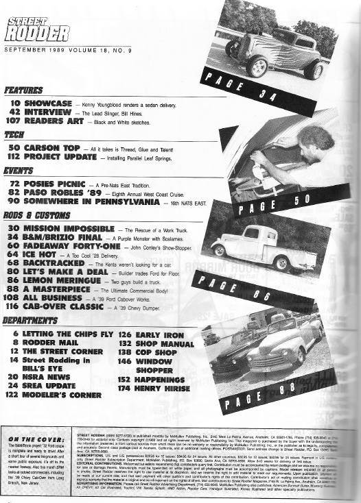 Reviews STREET RODDER 1989 SEPT - CARSON TOP COVER, PROJ UPDATE, B&M/BRIZIO PROJ DONE