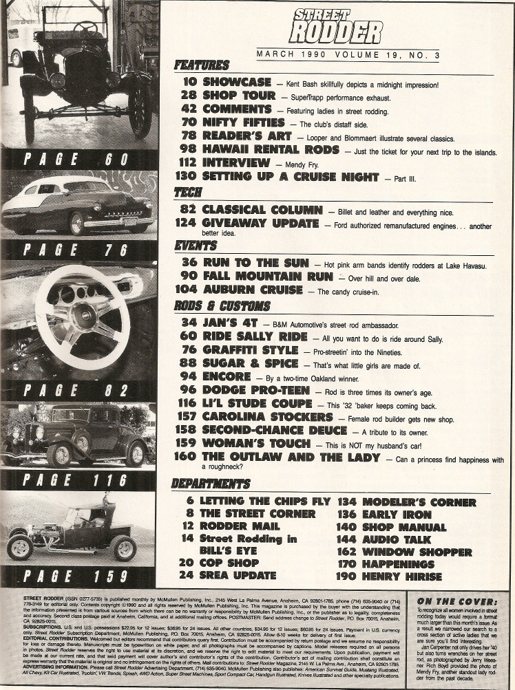Reviews STREET RODDER 1990 MAR - MEET MENDY FRY, SPECIAL RODDING LADIES ISSUE