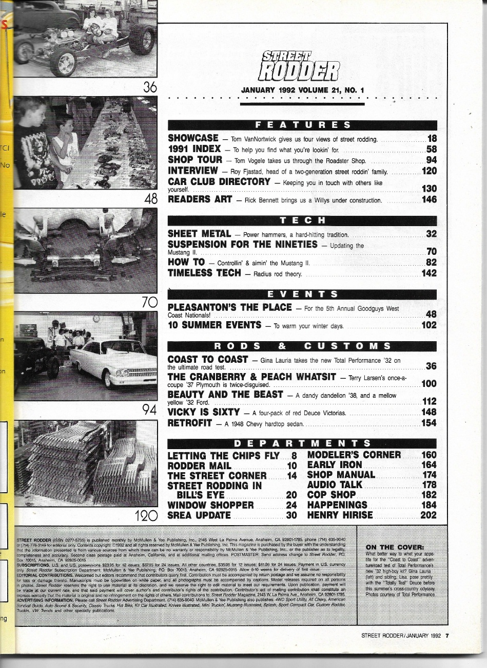 Reviews STREET RODDER 1992 JAN - IFS SPECIAL, MUSTANG II SUSPENSION