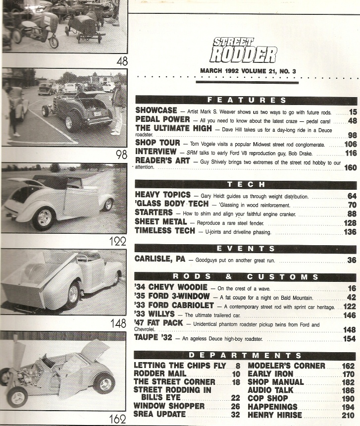 Reviews STREET RODDER 1992 MAR - PEDAL CAR SPECIAL, MAK-A-FENDER, SHIM-A-STARTER