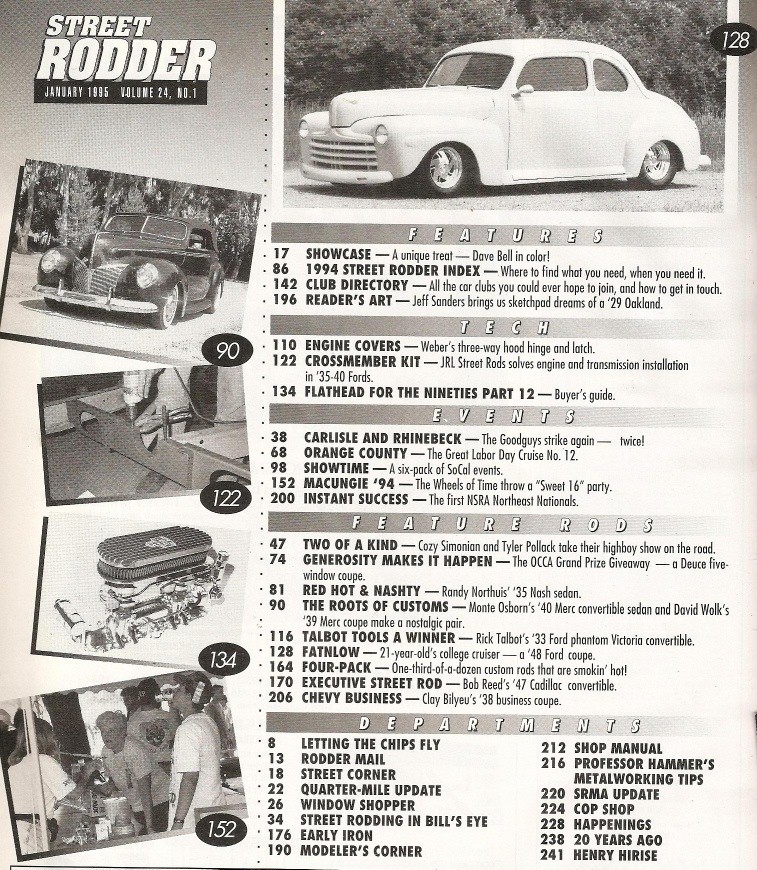 Reviews STREET RODDER 1995 JAN - THREE-WAY HOOD HINGES, 34-40 FORD CROSSMEMBER KIT