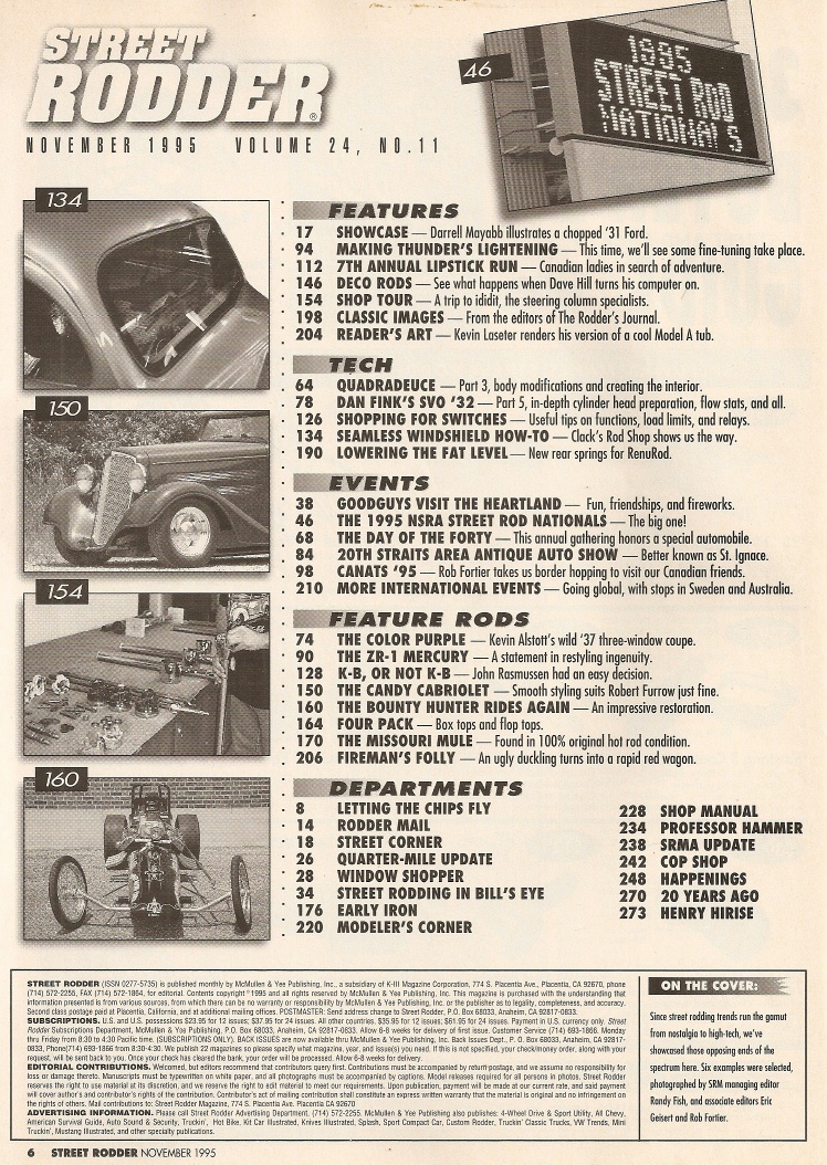 Reviews STREET RODDER 1995 NOV - A STUDY OF SWITCHES & RELAYS, SEAMLESS WINDSHIELD