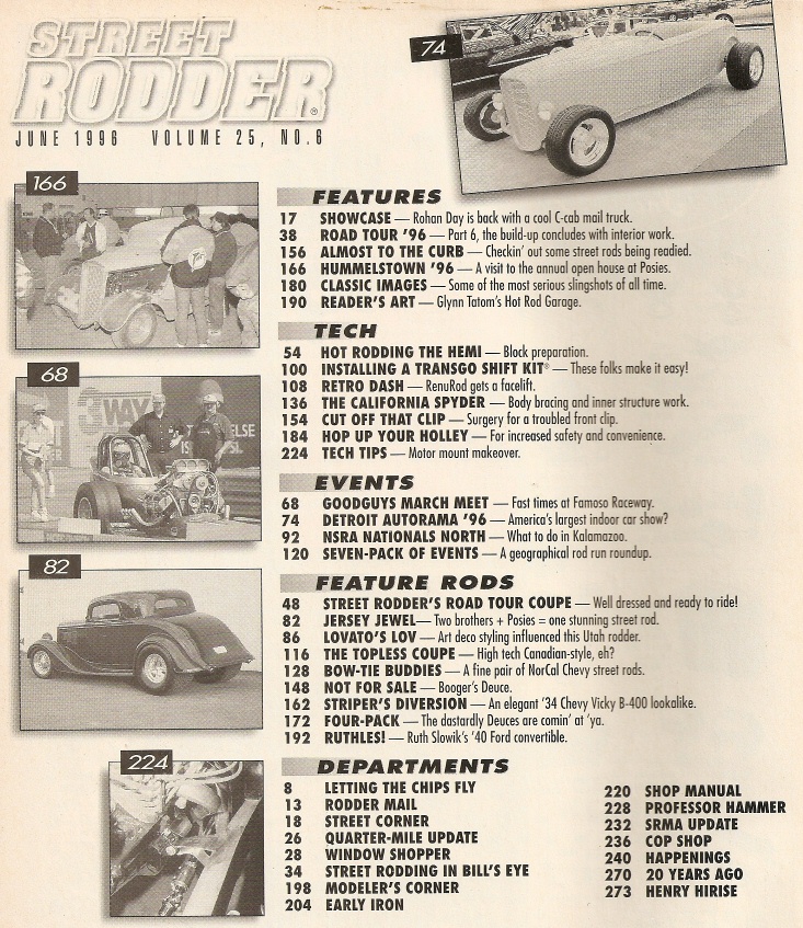 Reviews STREET RODDER 1996 JUNE - HEMI HOP-UP, CUSTOM DASH, TUNA-HOLLEY, CLIP REPAIR
