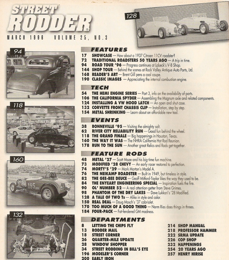 Reviews STREET RODDER 1996 MAR - VW HOOD LATCH INSTALL, VETTE FRONT CLIP INSTALL