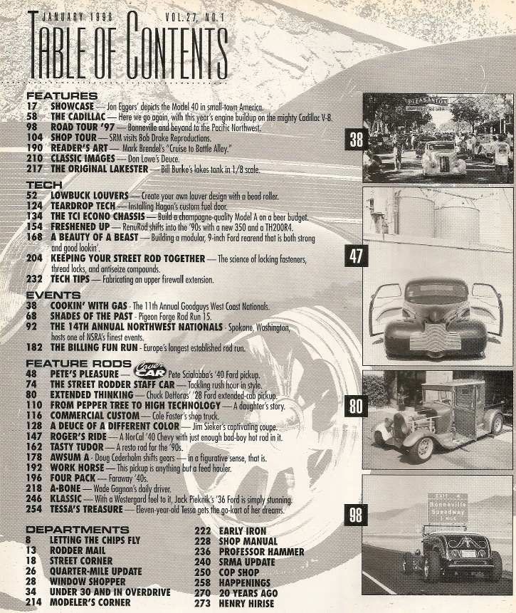 Reviews STREET RODDER 1998 JAN - CHEAP LOUVERS MADE, 9" FORD UPGRADE, PIGEON FORGE