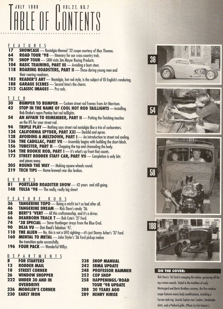 Reviews STREET RODDER 1998 JULY - CUSTOM ROD FRAMES, 2X3 SET UP, DEUCE TRUCK CHOP