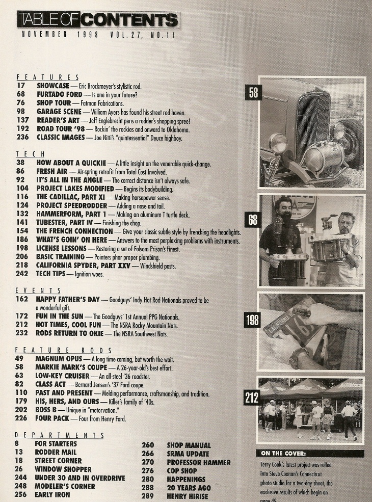 Reviews STREET RODDER 1998 NOV - QUICK CHANGE, HEADLAMPS FRENCHED, PLATES RESTORED