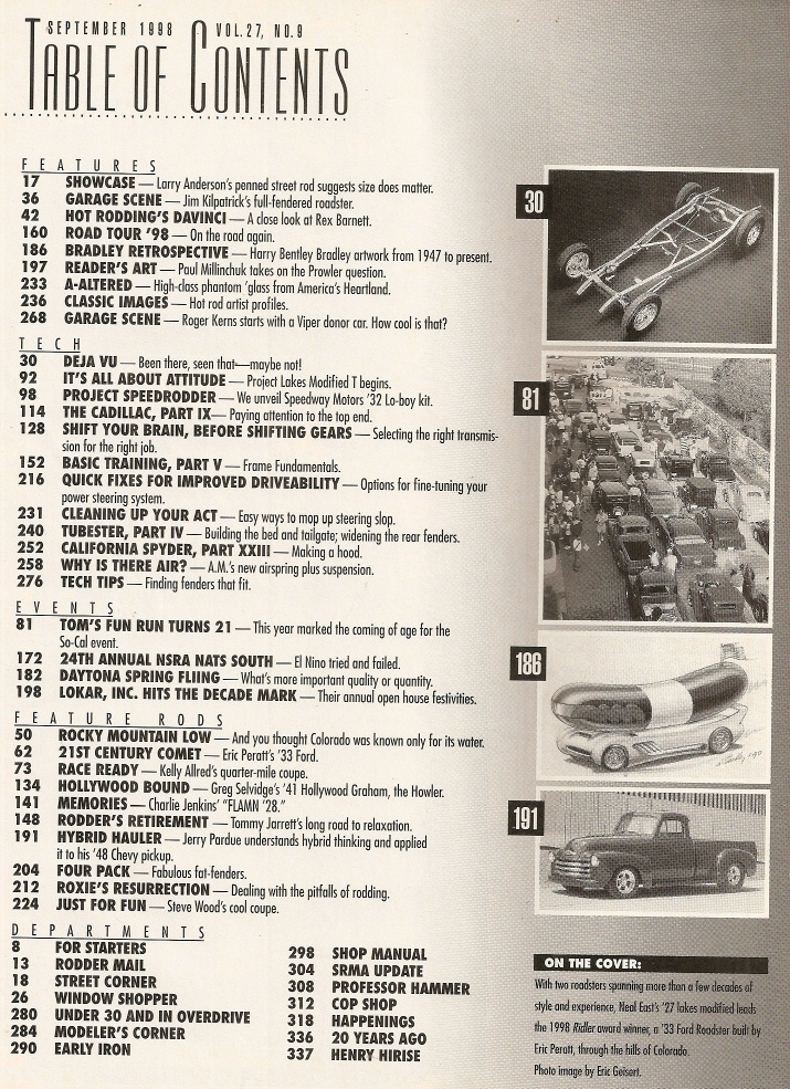 Reviews STREET RODDER 1998 SEPT - BRADLEY, SO-CAL STEP-BOXED FRAME, ROD HOOD MADE