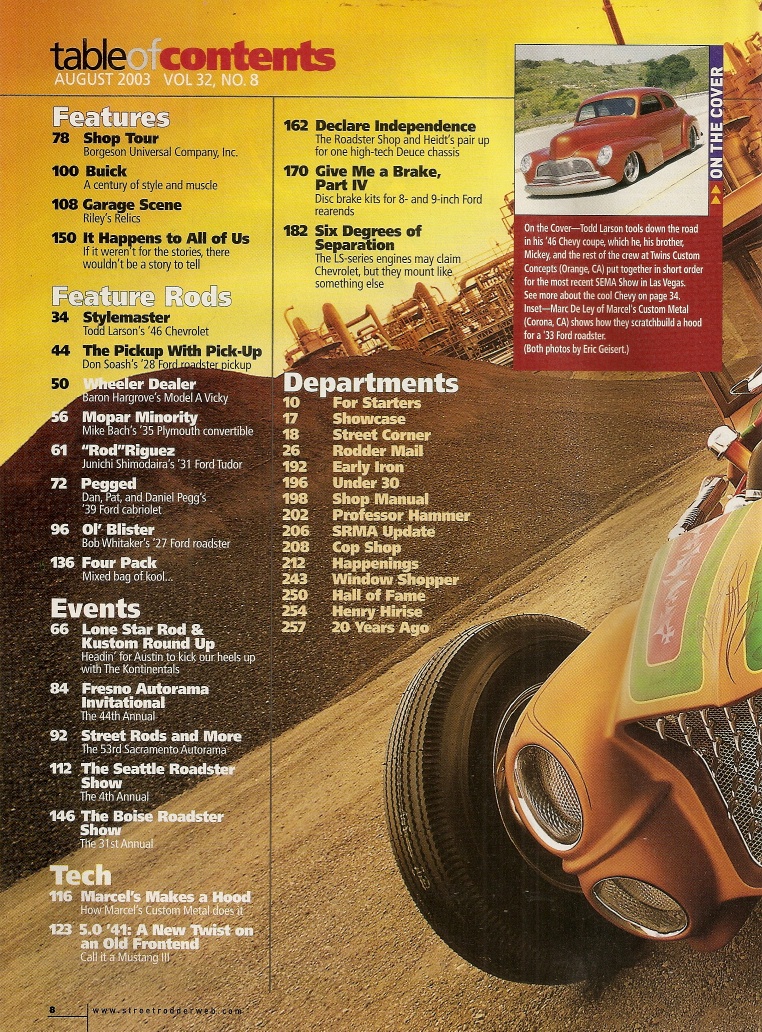 Reviews STREET RODDER 2003 AUG - CUSTOM 33 FORD HOOD MADE, LS1 INTO A 36 PONTIAC